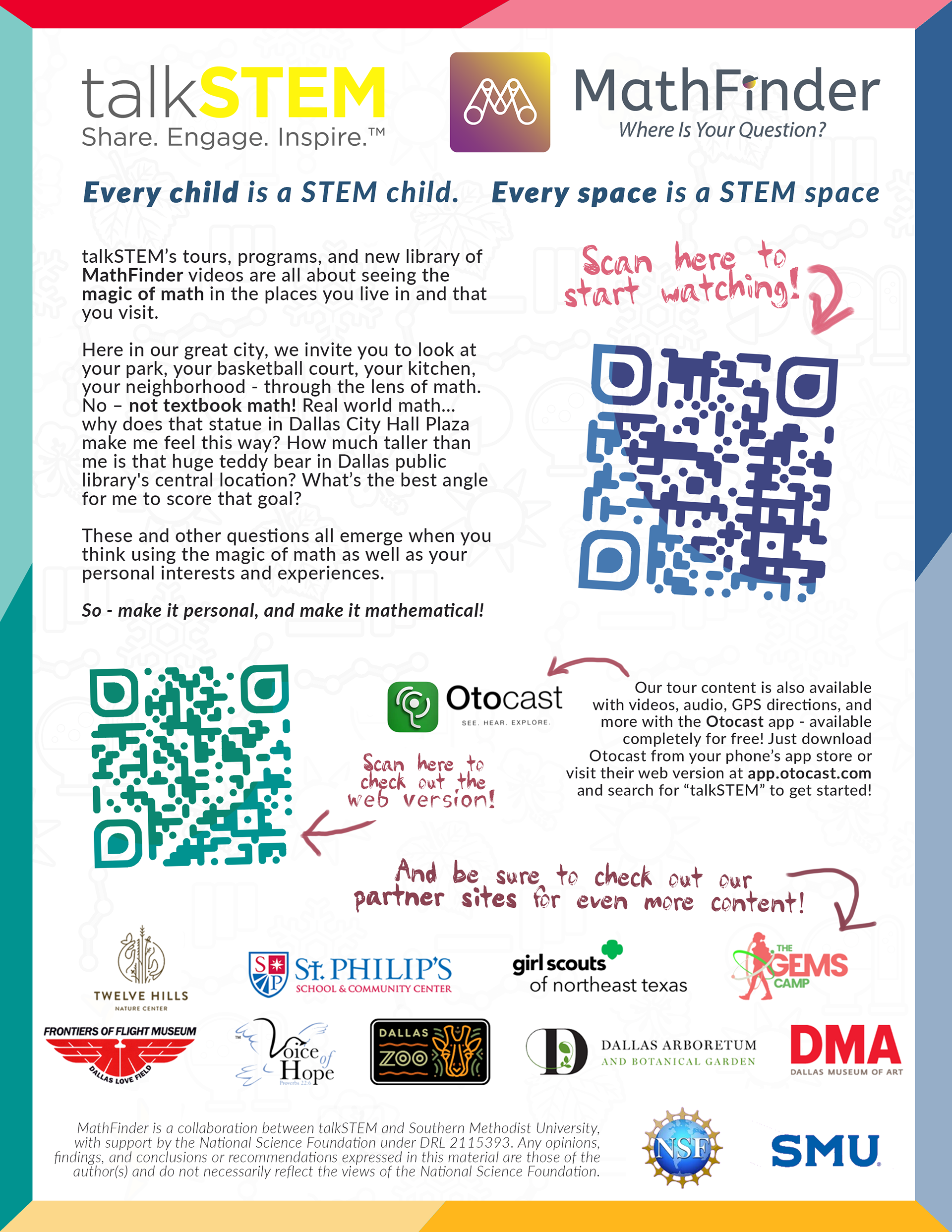 Various graphics and document construction for talkSTEM and MathFinder accessible education initiatives at multiple sites; digital.