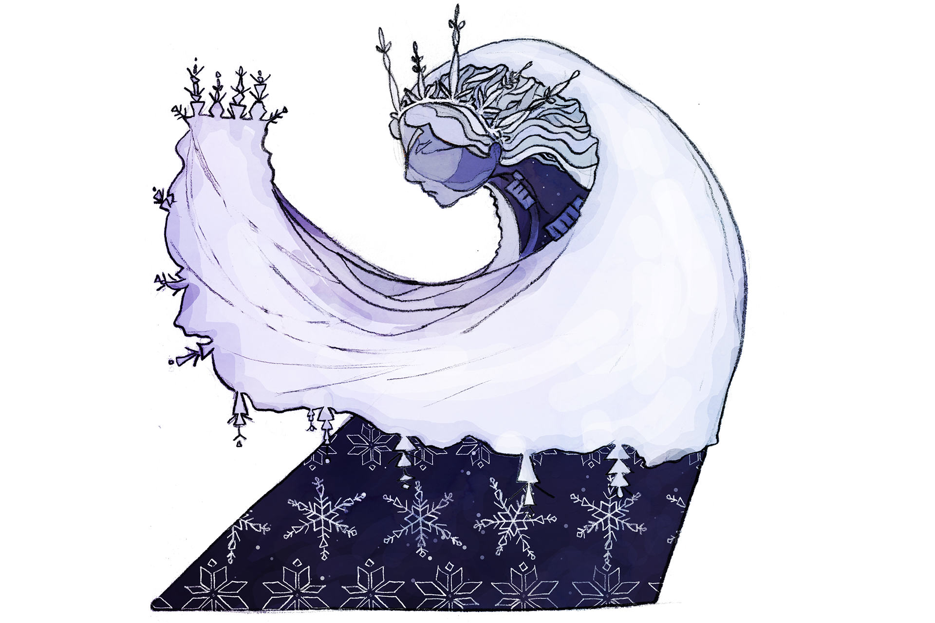 Illustration for winter greeting card - pencil, Adobe Photoshop